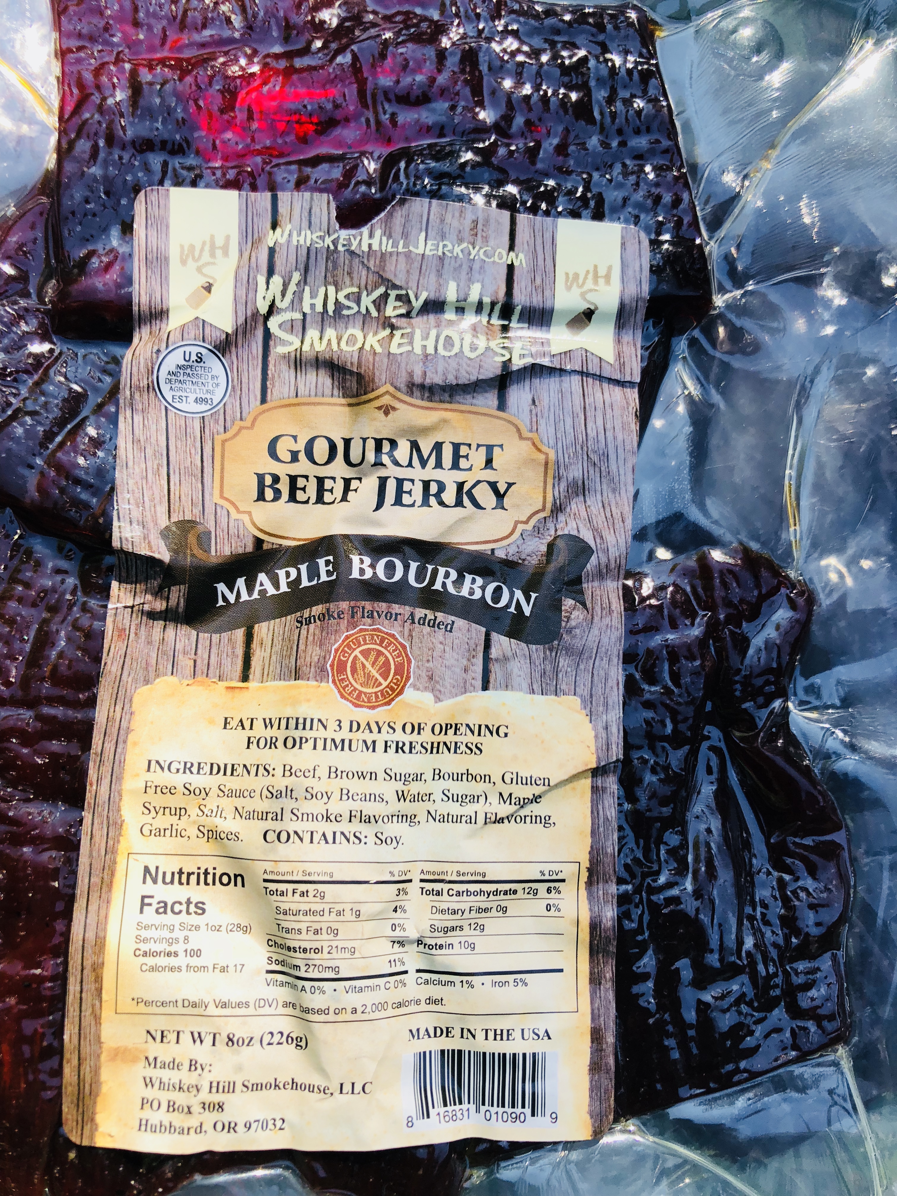Some of Whiskey Hill Smokehouse private label beef jerky brands.